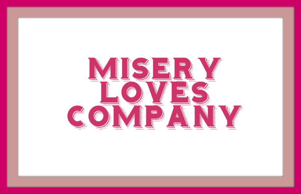 Who hasn’t heard the saying, “misery loves company?” I’m not sure if its true meaning, but I’ve heard it often during my lifetime. I think what gets the most is does misery love the company, or is it the other way around? It’s a question that I’ve asked myself time and again. When I looked it up in the dictionary, it states that it’s people who are unhappy and want to share their troubles. Other definitions were that because people are unhappy, they like to share their troubles with others. For years, there’s been this thinking that we are drawn to people who are equally miserable as ourselves. Although wouldn’t that be the same as saying that we are all miserable to some level? It’s a saying that makes me wonder if we are depressed together because another person’s mood affects our own.